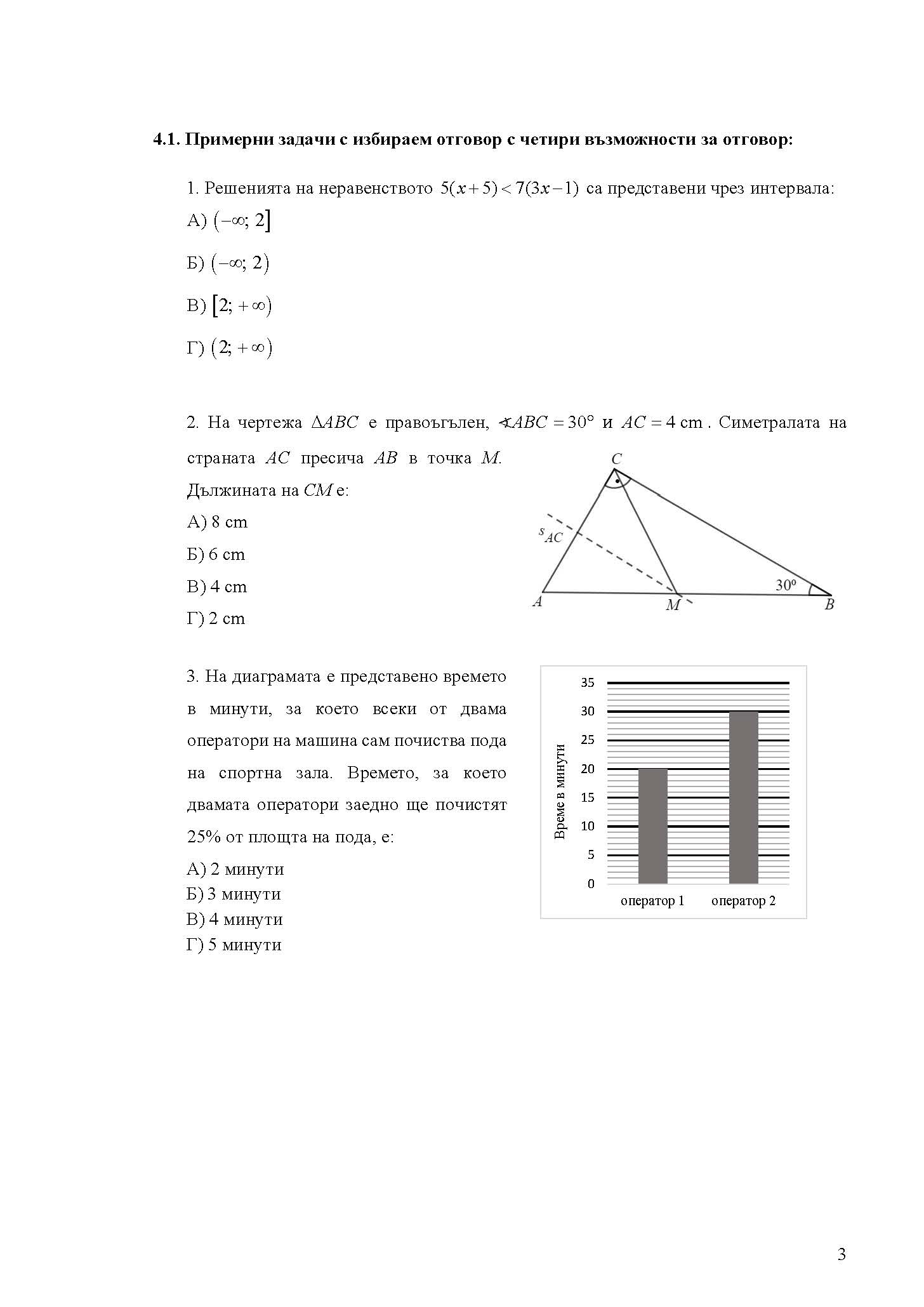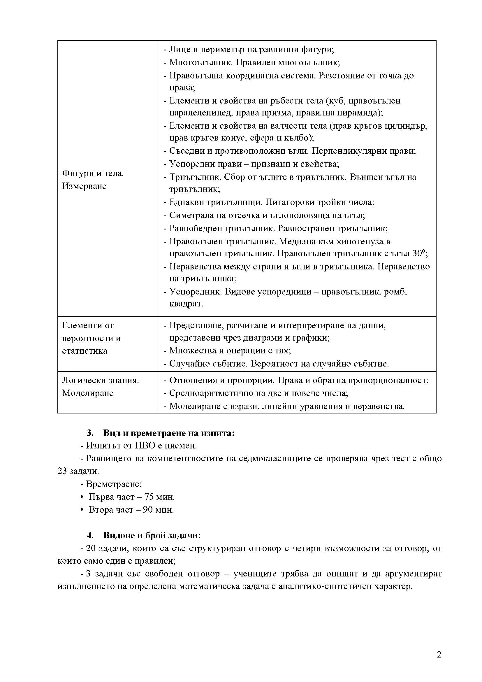 3 задачи със свободен отговор – учениците трябва да опишат и да аргументират изпълнението на определена математическа задача с аналитико-синтетичен характер