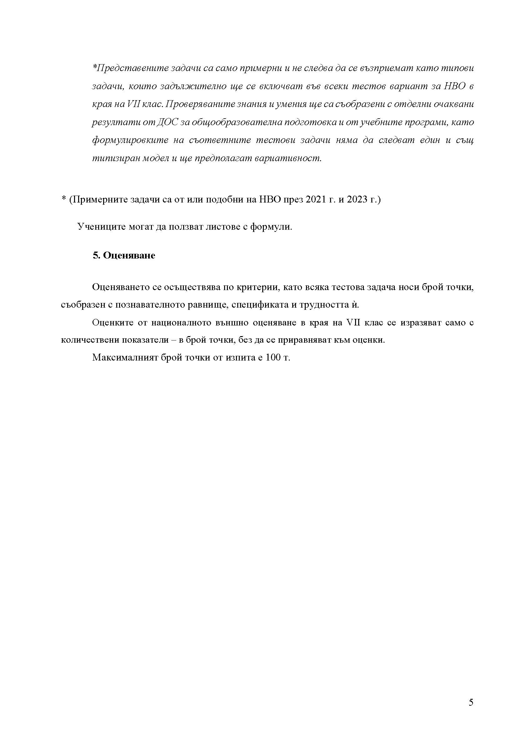 Министерството на образованието и науката качи на сайта си примерни тестове по български език и литература, математика и чужд език за Националното външно оценяване след 7. клас за учебната 2023 – 2024 година, съобщават от БНТ. Тази учебна година има облекчения за седмокласниците. Времето за решаване на първия модул от тестовете се увеличава от 60 на 75 минути, за да имат повече време за решаване и пренасяне на верните отговори.