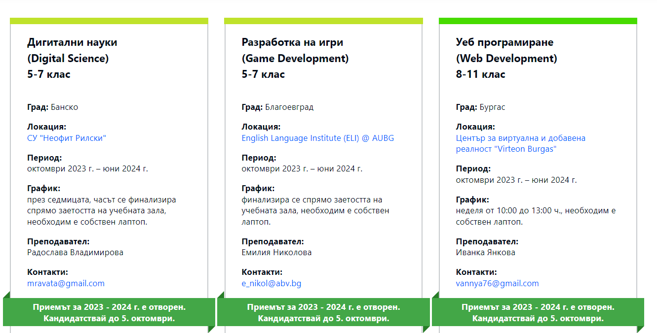 Училищната Телерик Академия е най-мащабната (и най-готина) безплатна ИТ инициатива за ученици в България. Тяхната мисия е да осигури достъп на българските ученици до съвременно технологично обучение и да ги подготвим за дигиталните професии на бъдещето“.Обучение в цялата страна: