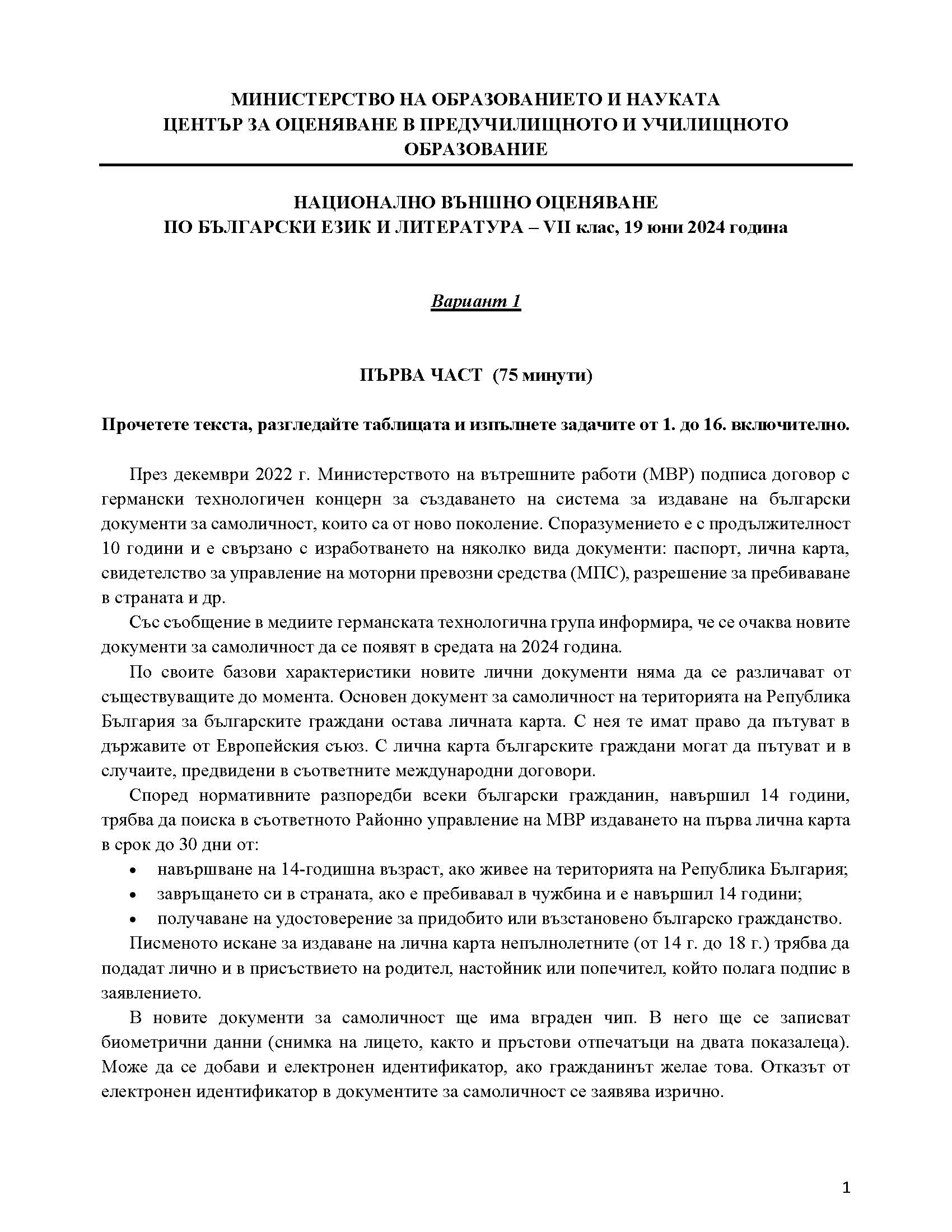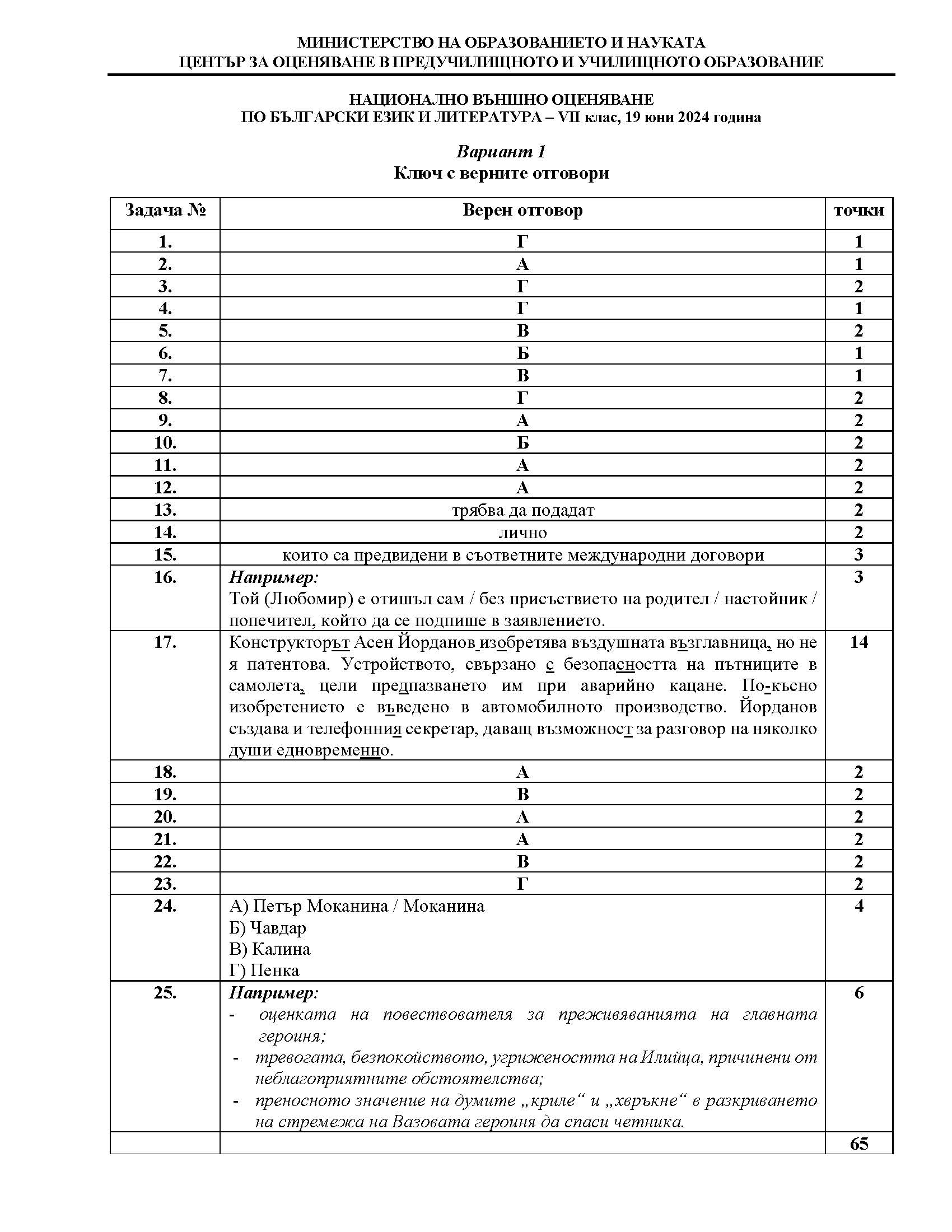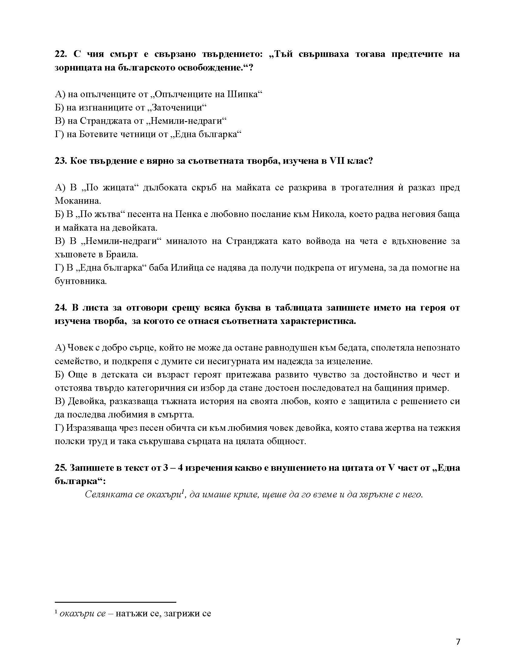 Тук можете да видите изпита, по който работиха седмокласниците през 2024 година: