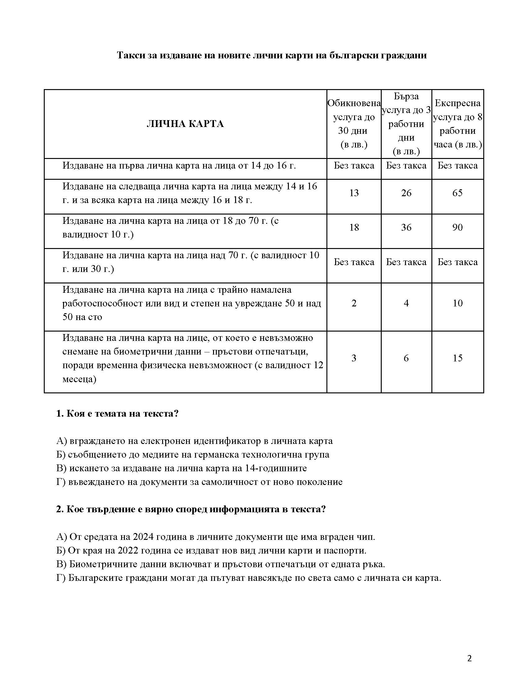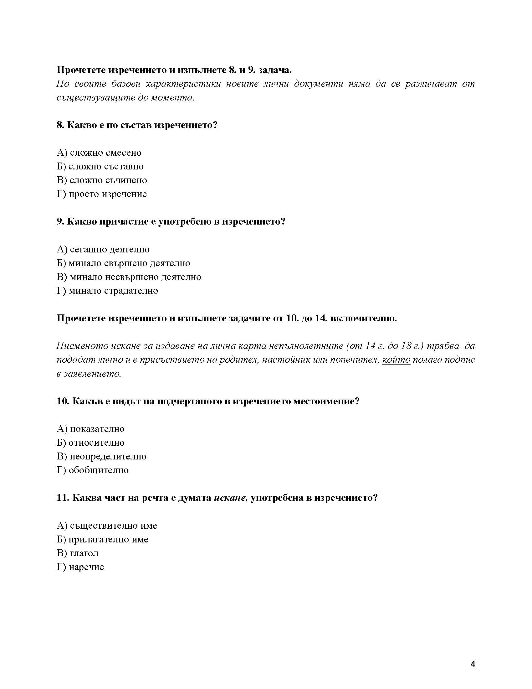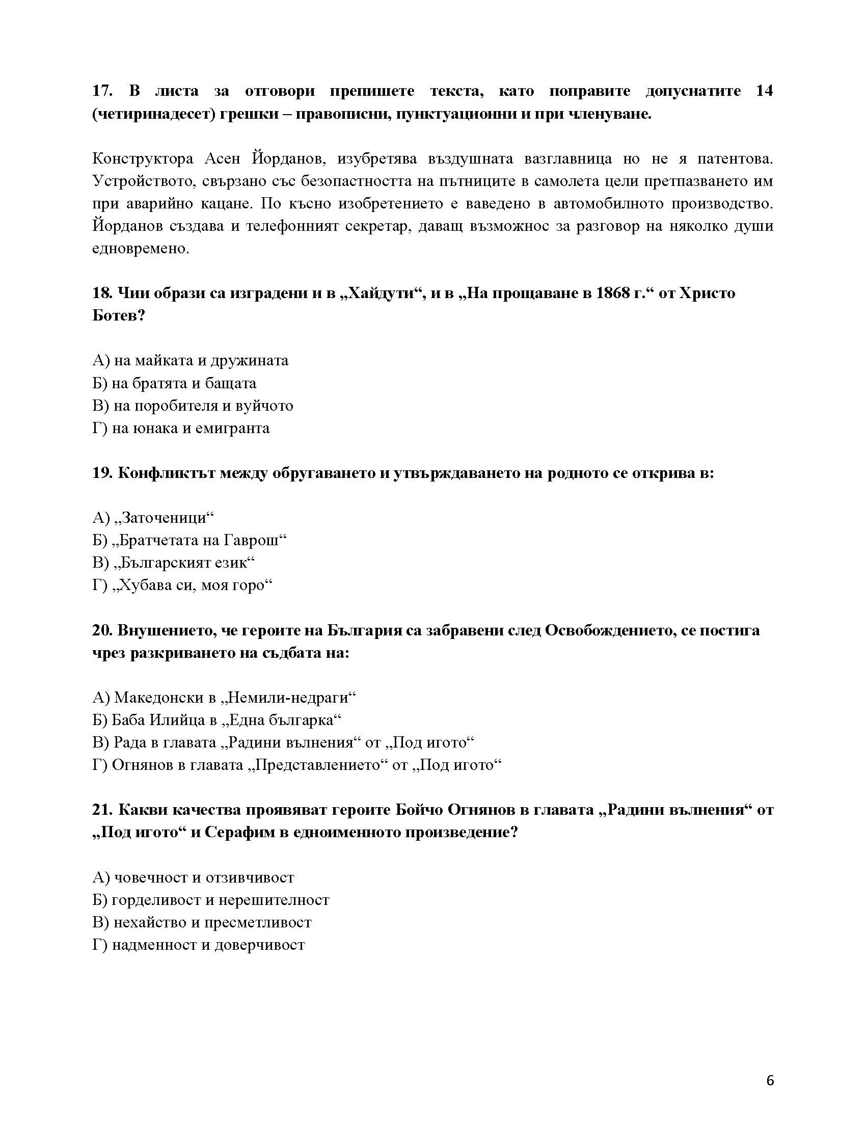 - 1 задача с разширен отговор: Тук се оценява способността на учениците да изразяват своите мисли в писмена форма, да анализират текстове и да аргументират своите твърдения.