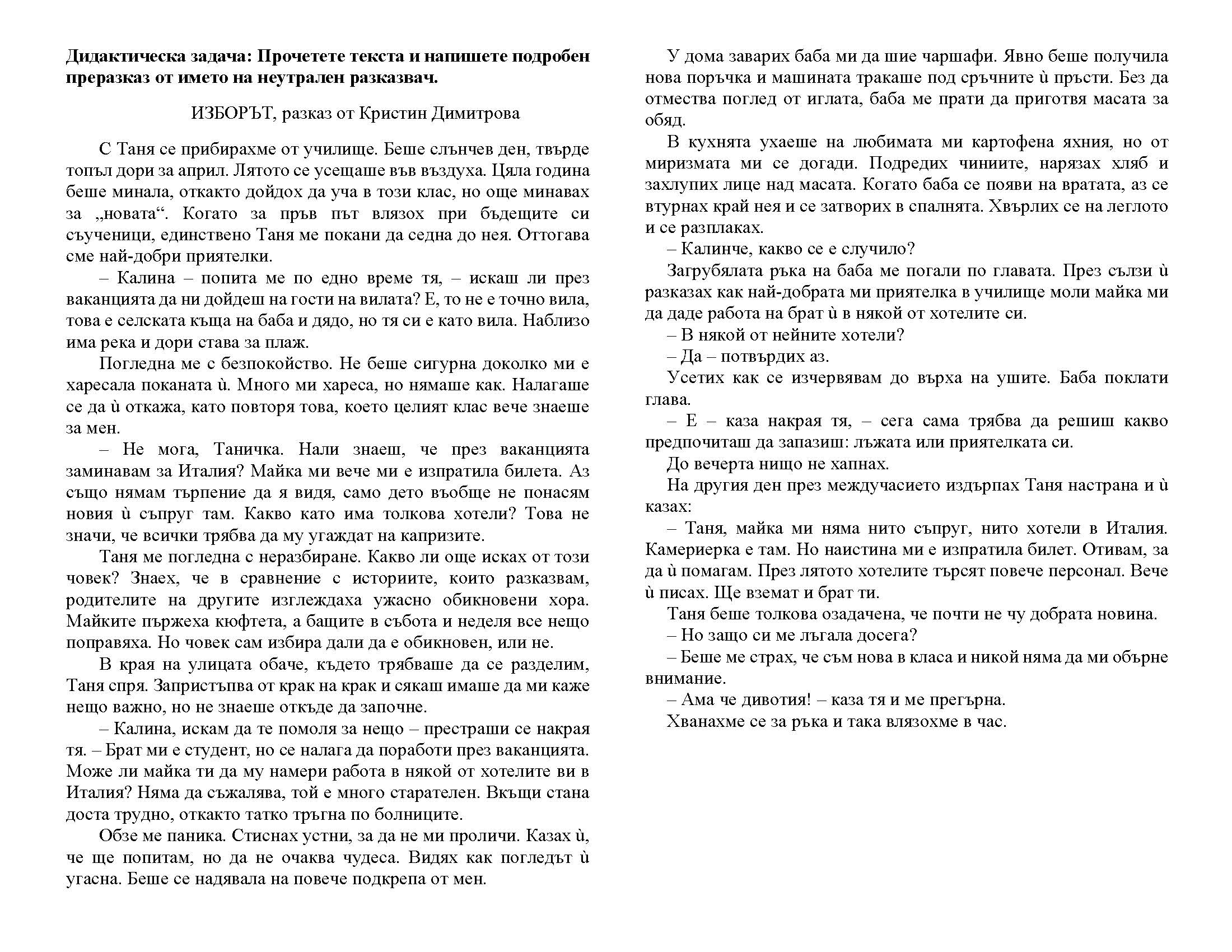 - 1 Задача за създаване на текст: Учениците трябва да напишат собствен текст, като спазват определени критерии.