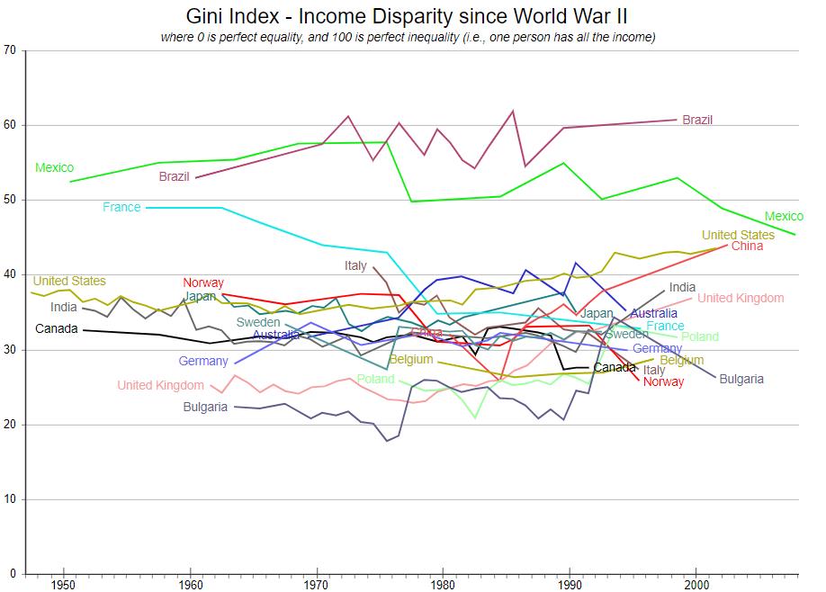 Как се изчислява Коефициентът на Джини, който се използва за измерване на разликата между благосъстоянието на бедните и богатите в едно общество. Стойност 0 показва пълно равенство в доходите, а стойност 1 (или 100%) показва максимално неравенство (когато само един човек получава всички доходи, а всички други нямат нищо).