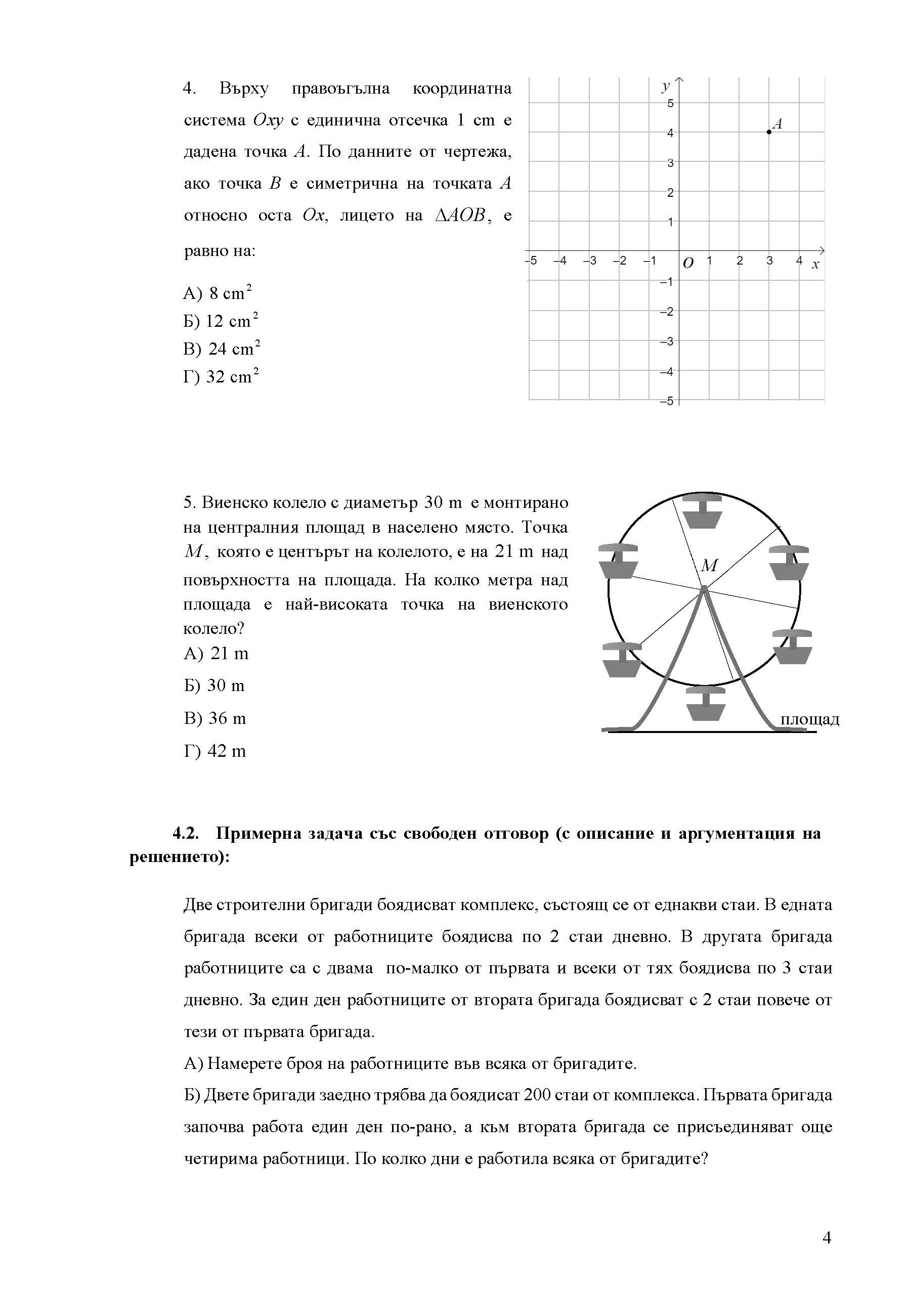 3 задачи със свободен отговор – учениците трябва да опишат и да аргументират изпълнението на определена математическа задача с аналитико-синтетичен характер