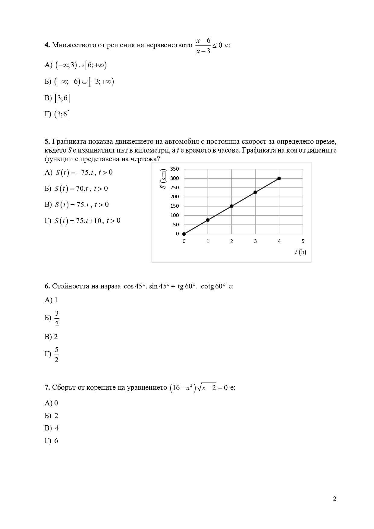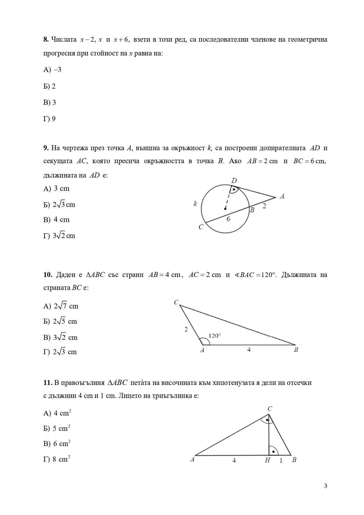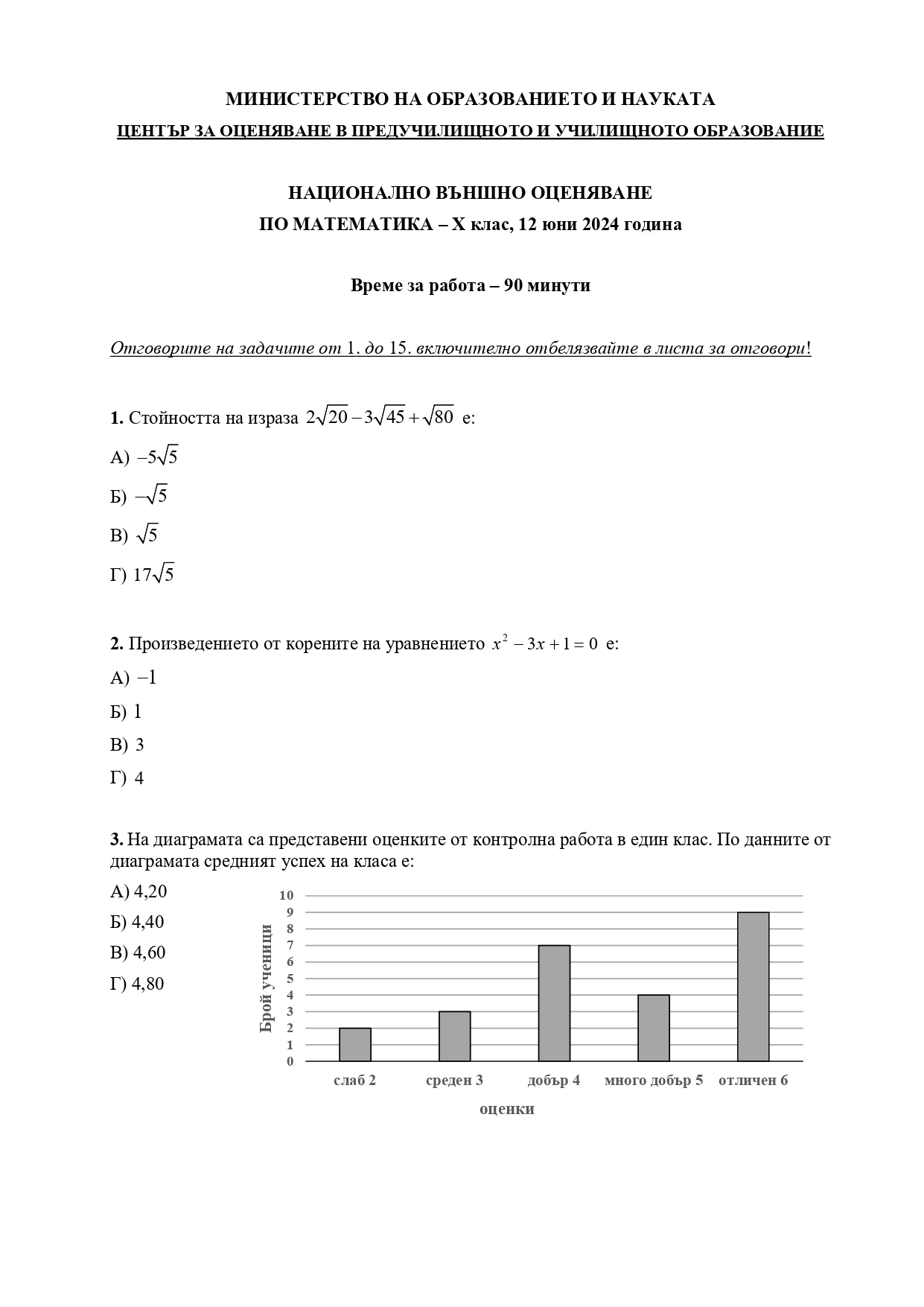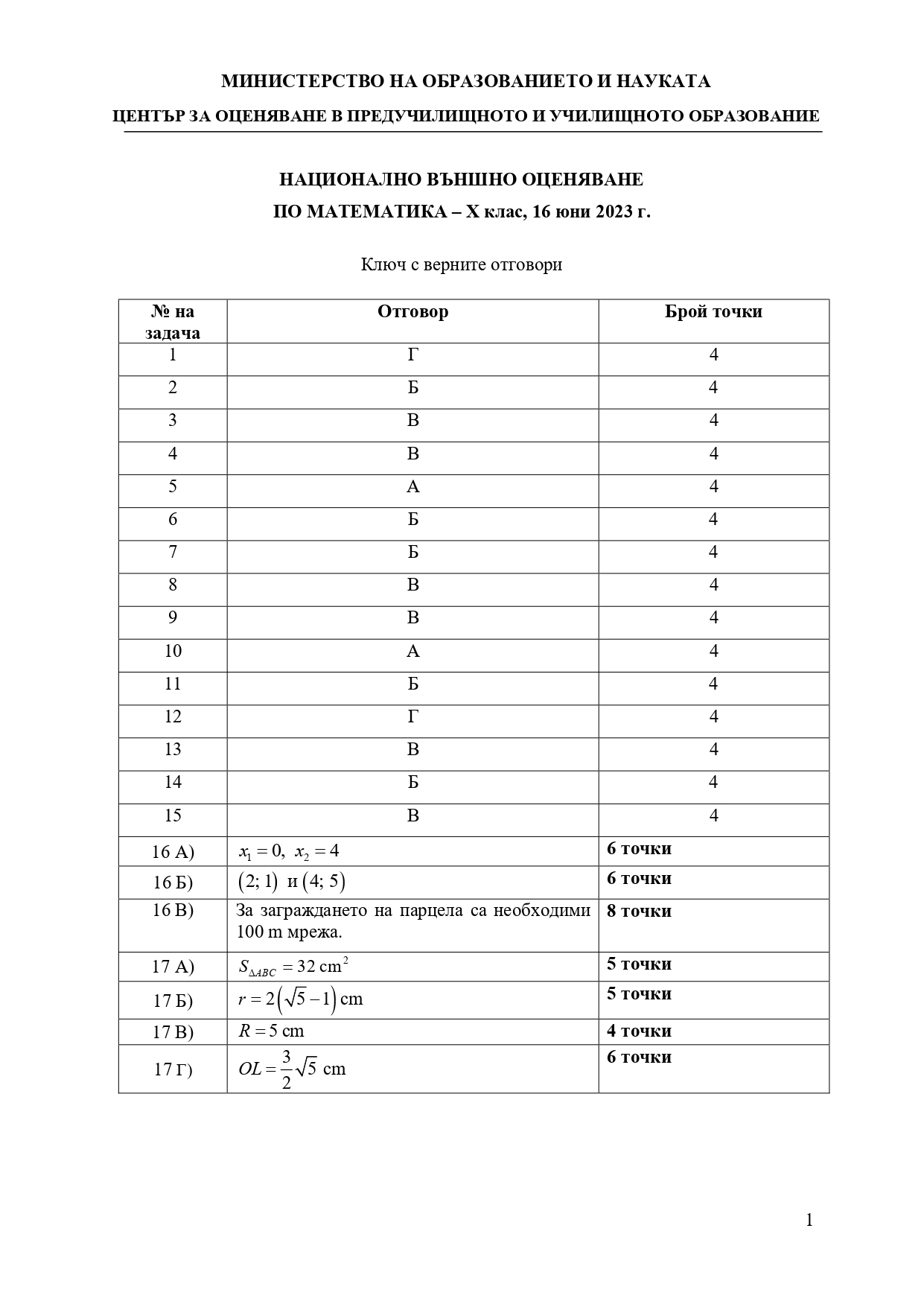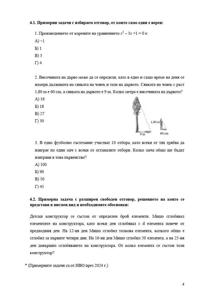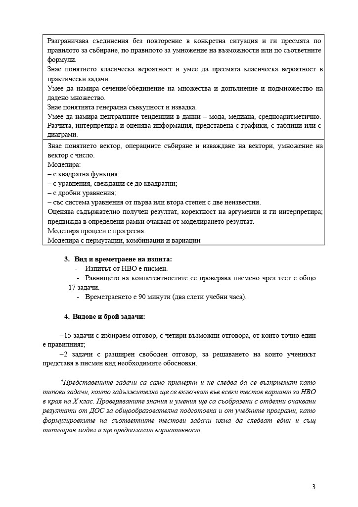 Формули, позволени за ползване по време на изпита НВО – математика след десети клас: