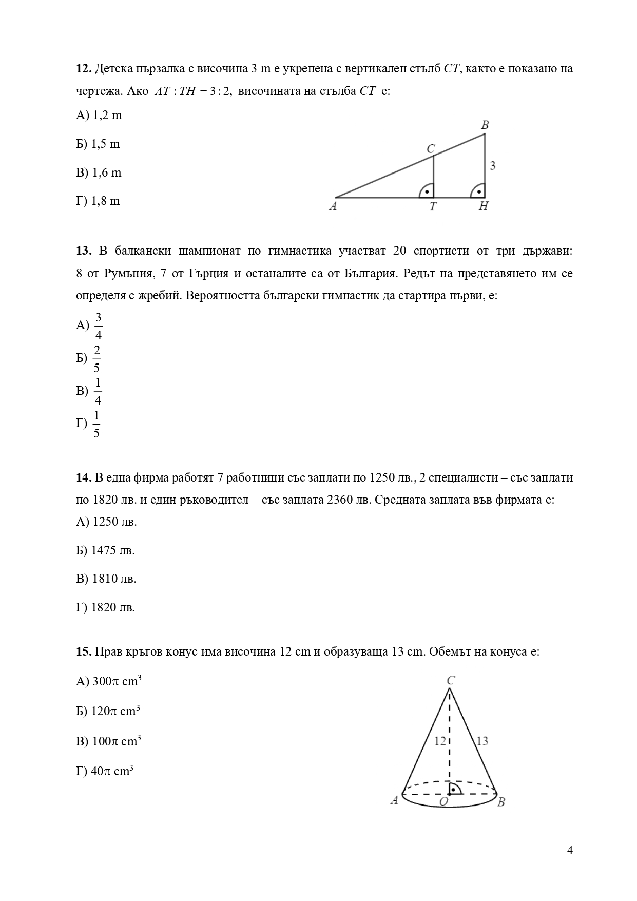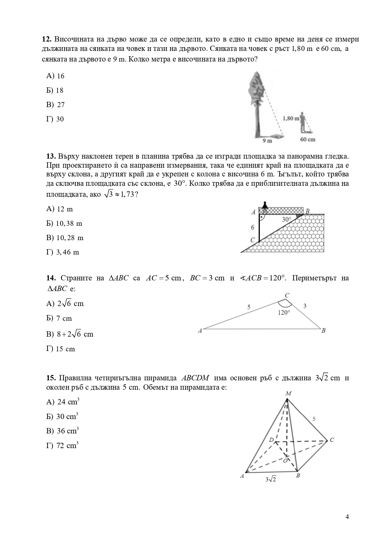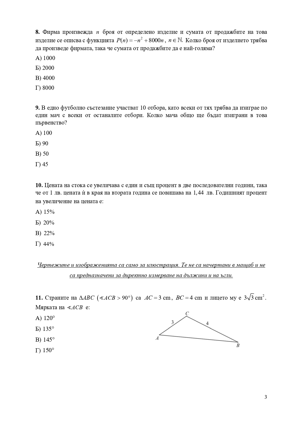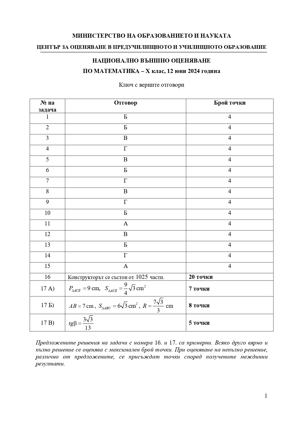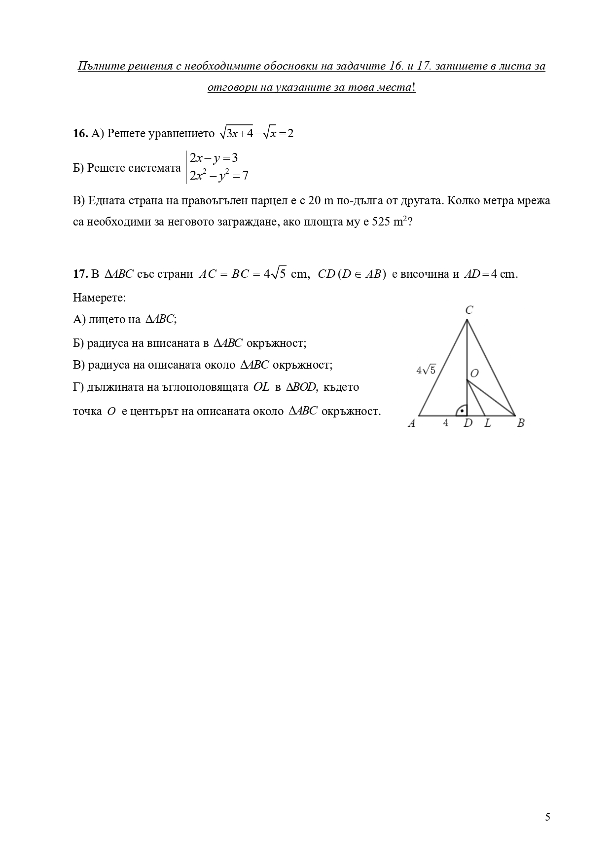 Формули, позволени за ползване по време на изпита НВО – математика след десети клас: