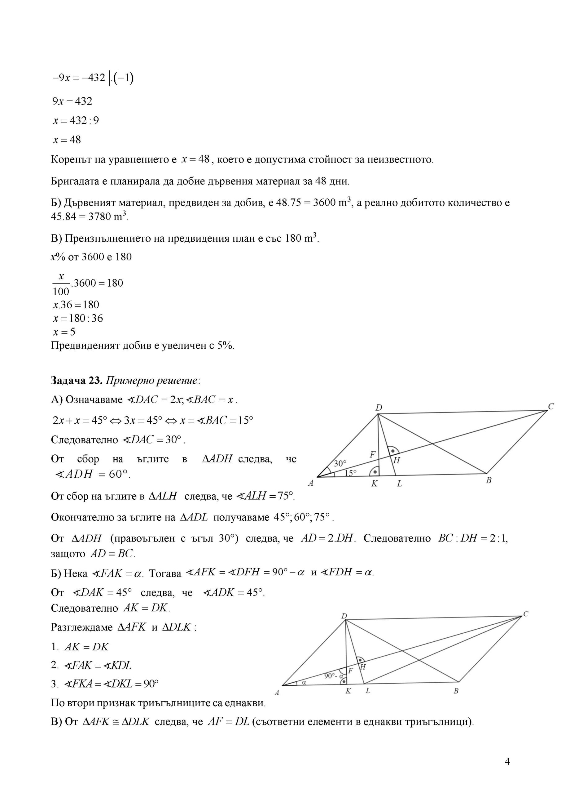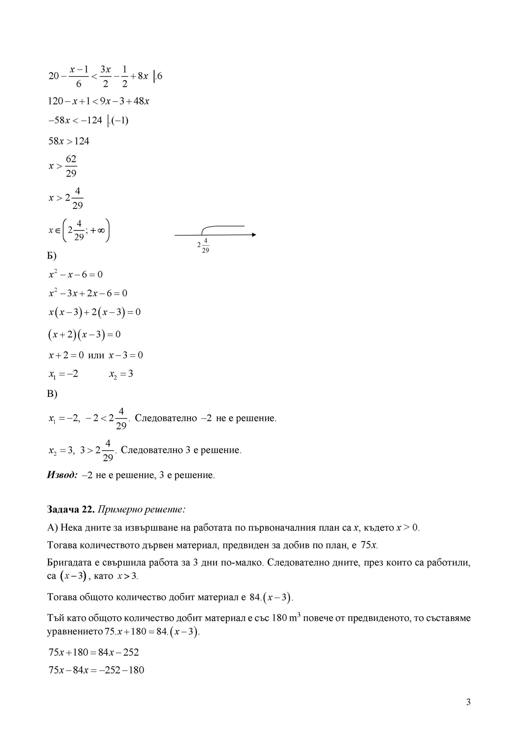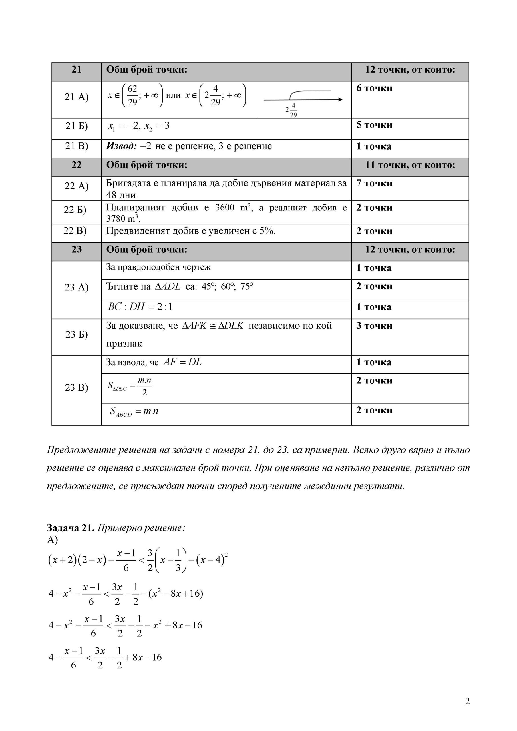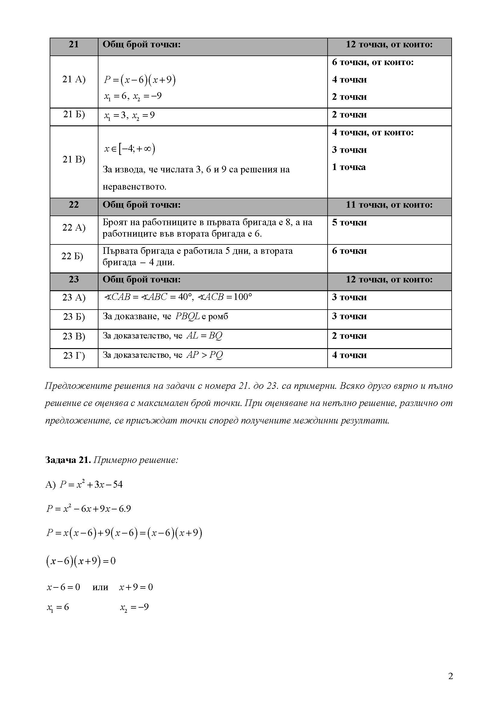 През втората част, за 1 час и 30 минути учениците отговарят на три задълбочени въпроса с няколко подусловия (за общо 35 точки). Тук е необходимо да се работи концентрирано и да се използват детайлните знания за късния учебен материал от 7-ми клас.