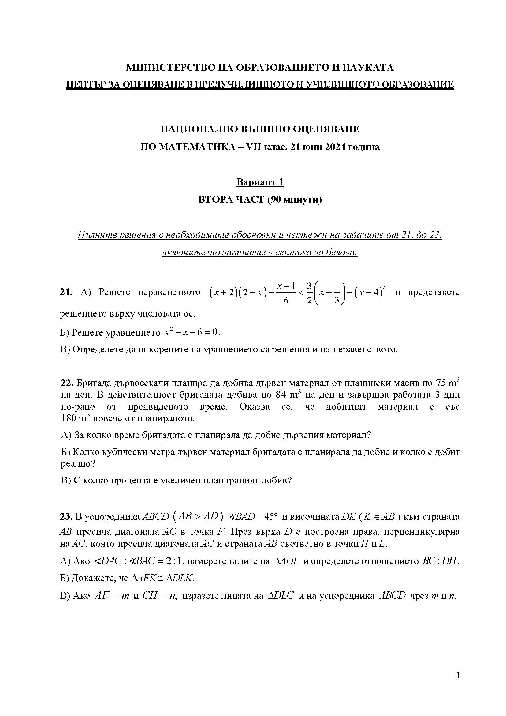 НВО след 7-ми клас е стандартизиран тест, който оценява знанията на учениците по математика на всички ученици в България.